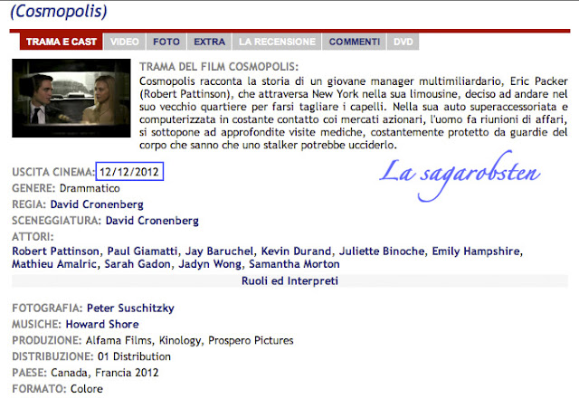 El 12 de Diciembre de 2012 se estrena Cosmopolis en Italia