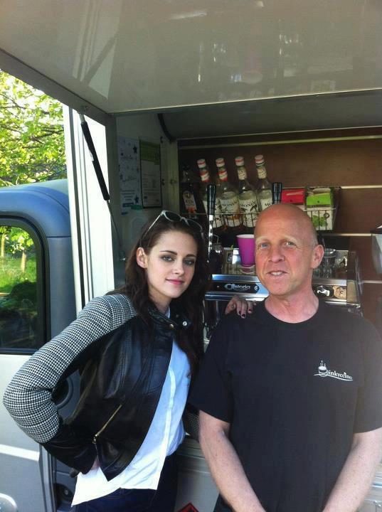 "Ahh alguien famoso de pie junto a Kristen Stewart, ¡oh, es ese tipo de Dinkyccino Coffe, Adrian Mills"