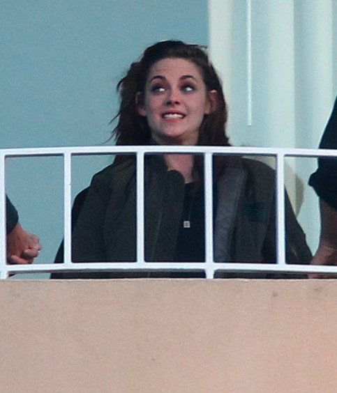 Así que básicamente dos de mis amigas y yo estuvimos con Kristen después de su photoshoot ayer y la pedimos una foto. Ella estaba con Ruth, HBG y otro chico (Seguramente Aid su pelúquero, al que vimos también en las fotos de su descanso en el balcón). Esto es básicamente la transcripción de lo que le dije y ella me dijo.