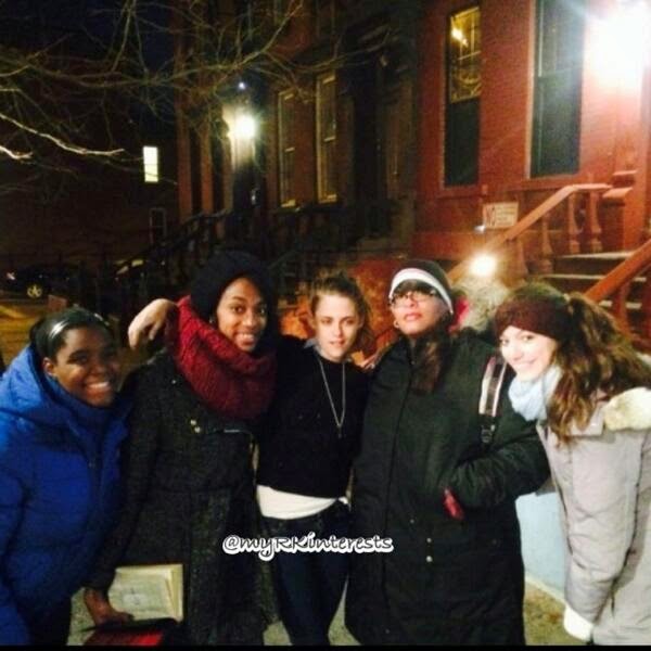 Kristen hizo paso por nosotras sobre la acera/ del set y su remolque. No intentamos tratar de detener su causa, obviamente, ella estaba trabajando.